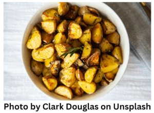 Roasted potatoes: One reason why it may prove beneficial for you to add potatoes to your menu is what they can provide for you. “Potatoes contribute key nutrients to the diet including vitamin C, potassium, and dietary fiber.” (Beals, 2018) Also, potatoes are “a carbohydrate-rich, energy-providing food with little fat.” (Camire et al., 2009) While this may be true, it is important to stress the importance of eating a balanced meal, consisting of a variety of nutrients and food groups. In addition, pay attention to how the food is cooked (i.e. baked vs. fried), how much oil is used, and what seasonings and/or additional ingredients are added. For the best results, try leaving on the skin of the potato. After you properly scrub and clean your potatoes, dice or cube them into even pieces and lightly season them. For a quicker bake time, you may want to dice them into small pieces.