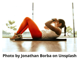 Body workouts. Some different body workouts you can do include: lunges, planks, bicycle crunches, jumping jacks, squats, push ups, etc. For these exercises, you want to make sure you go at your own speed in a comfortable form so that you don’t hurt yourself.